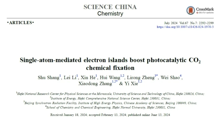 中文標題:單原子介導的電子島(dǎo)增強光催化二氧化碳化學固定