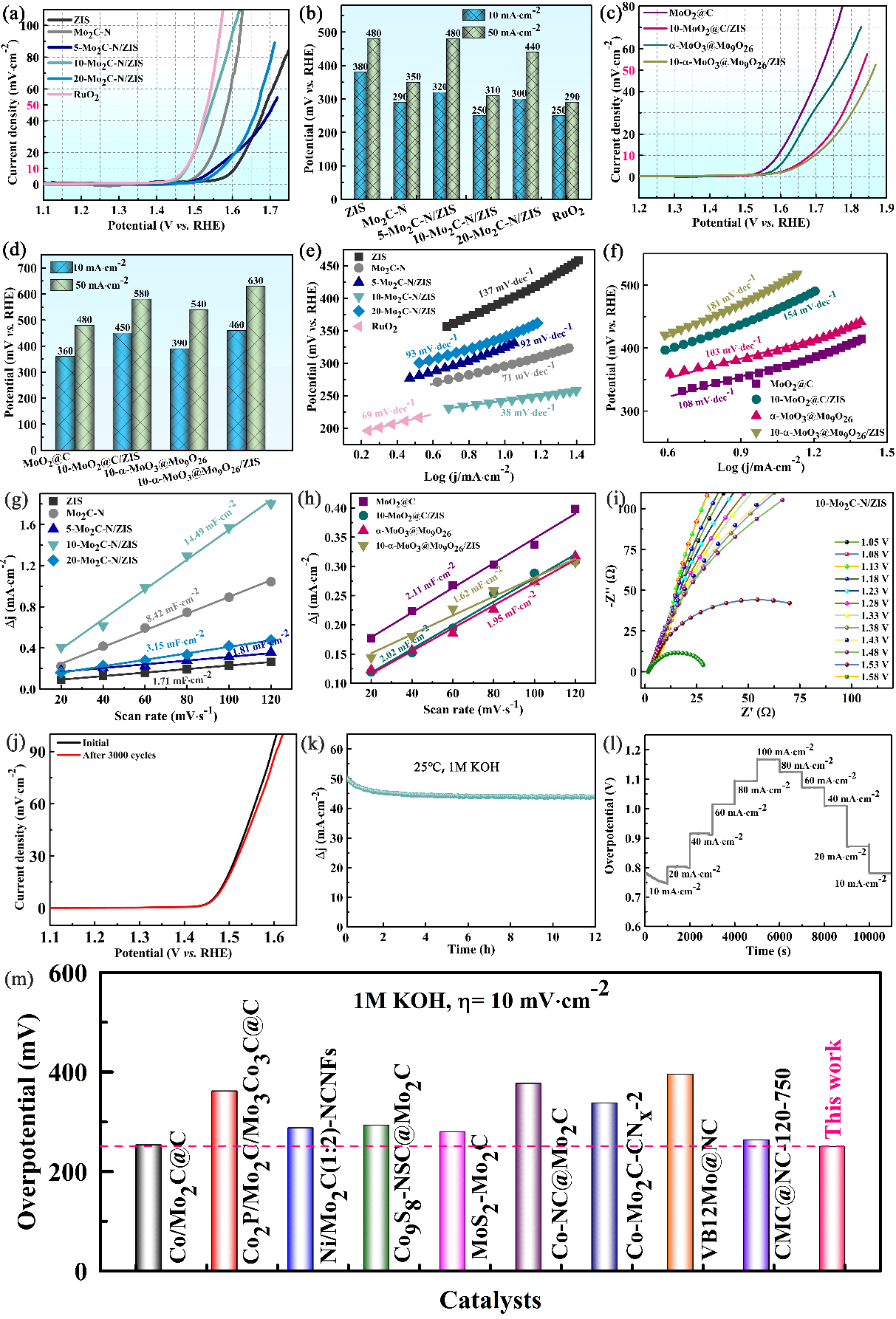 圖11 Mo2C-N, ZIS和Mo2C-N/ZIS的OER性能分析(xī)