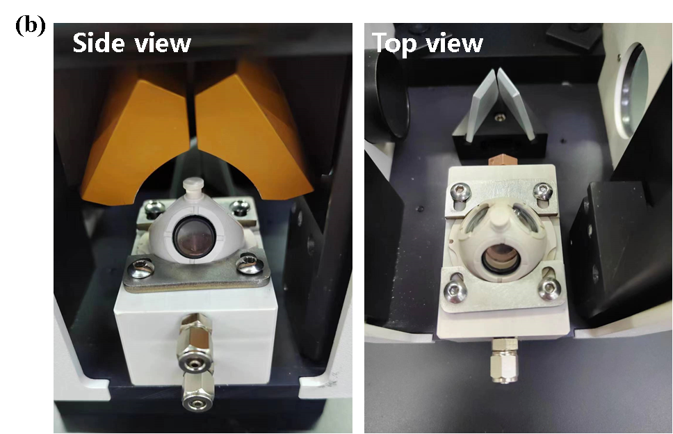 圖(tú)3 DRIFTS電池示意圖(a)和照片(b)