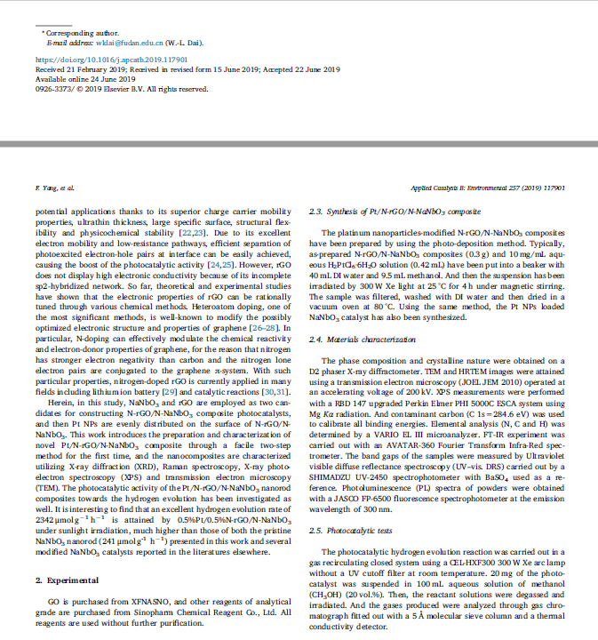 Facile sythesis of highly efficient pt/N-rGo/N-NaNbo3 nanorods toward photocatalytic hydrogen production