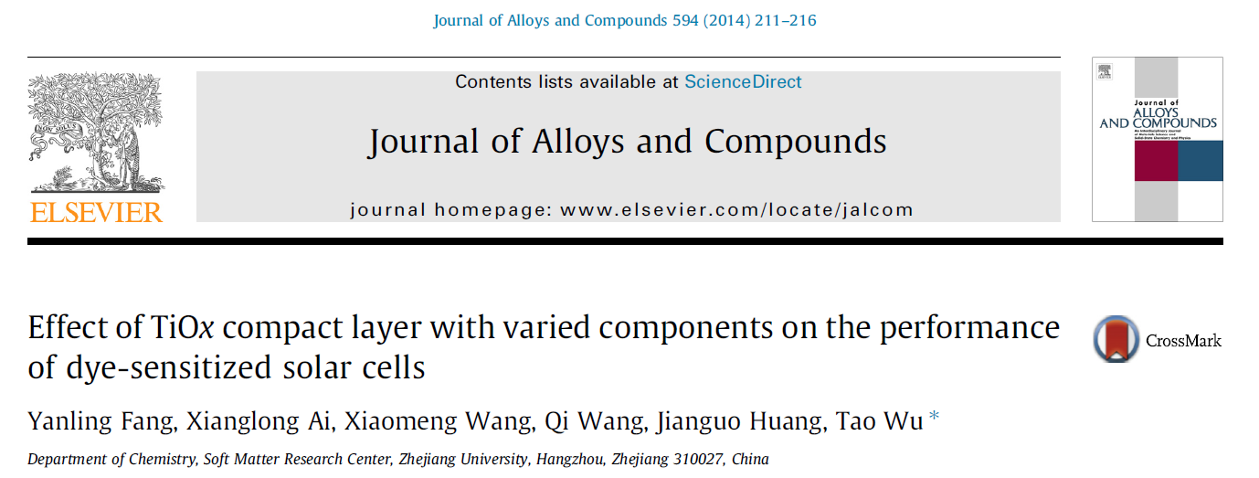 當前位置(zhì) : 首頁 > 資訊(xùn)動態 > 論文發表 > Effect of TiOx compact layer with varied components on the performance of dye-sensitized solar cells