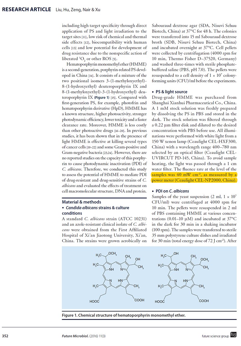 當前位置(zhì) : 首頁 > 資訊動態 > 論文發表 > Photodynamic inactivation of Candida albicans by hematoporphyrin monomethyl ether