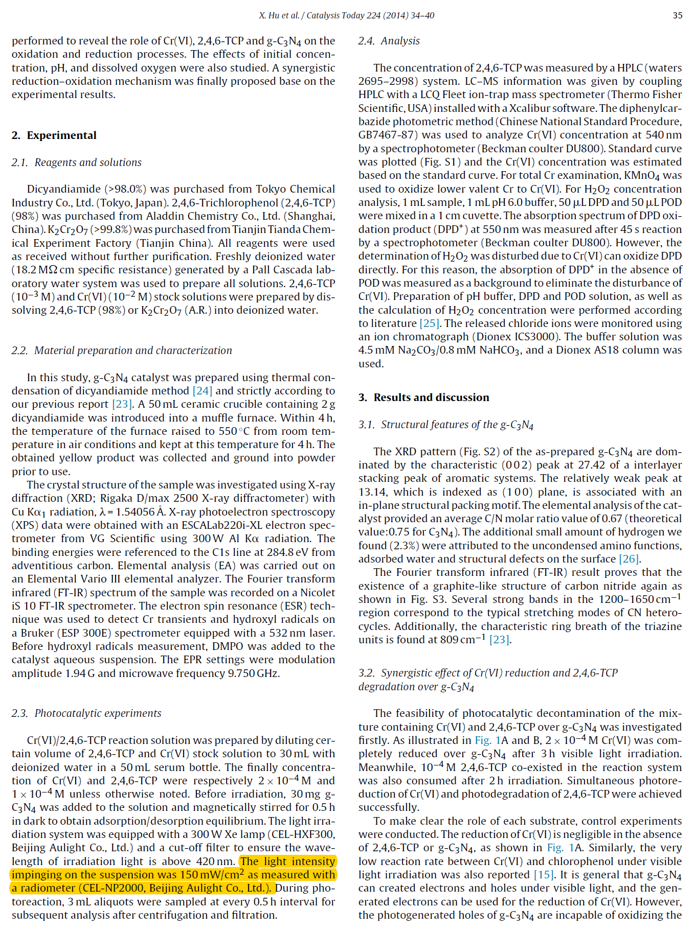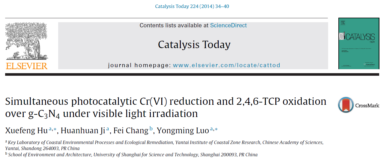 Simultaneous photocatalytic Cr(VI) reduction and 2,4,6-TCP oxidationover g-C3N4under visible light irradiation