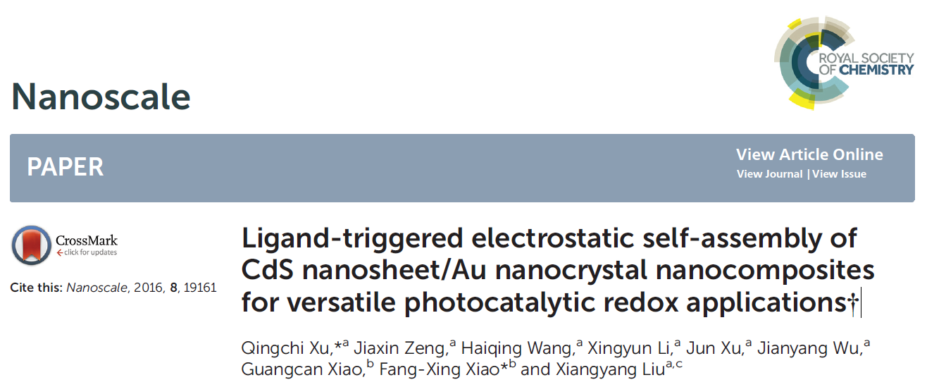 當前位置 : 首頁 > 資訊動態 > 論文發表(biǎo) > Ligand-triggered electrostatic self-assembly of CdS nanosheet/Au nanocrystal nanocomposites for versatile photocatalytic redox applications†