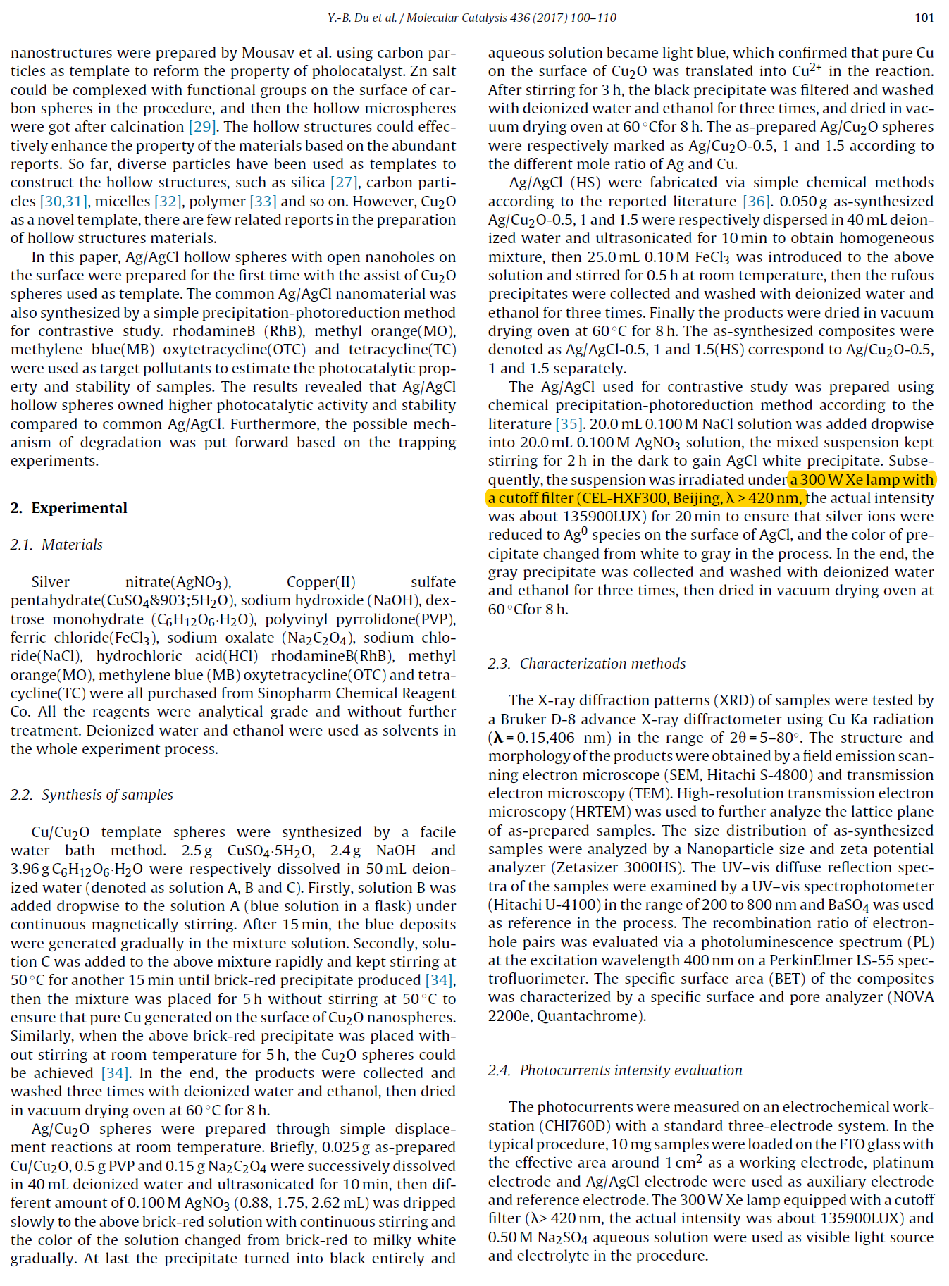 當前位置 : 首頁 > 資(zī)訊動態 > 論文發表 > Synthesis of Ag/AgCl hollow spheres based on the Cu2O nanospheres as template and their excellent photocatalytic property