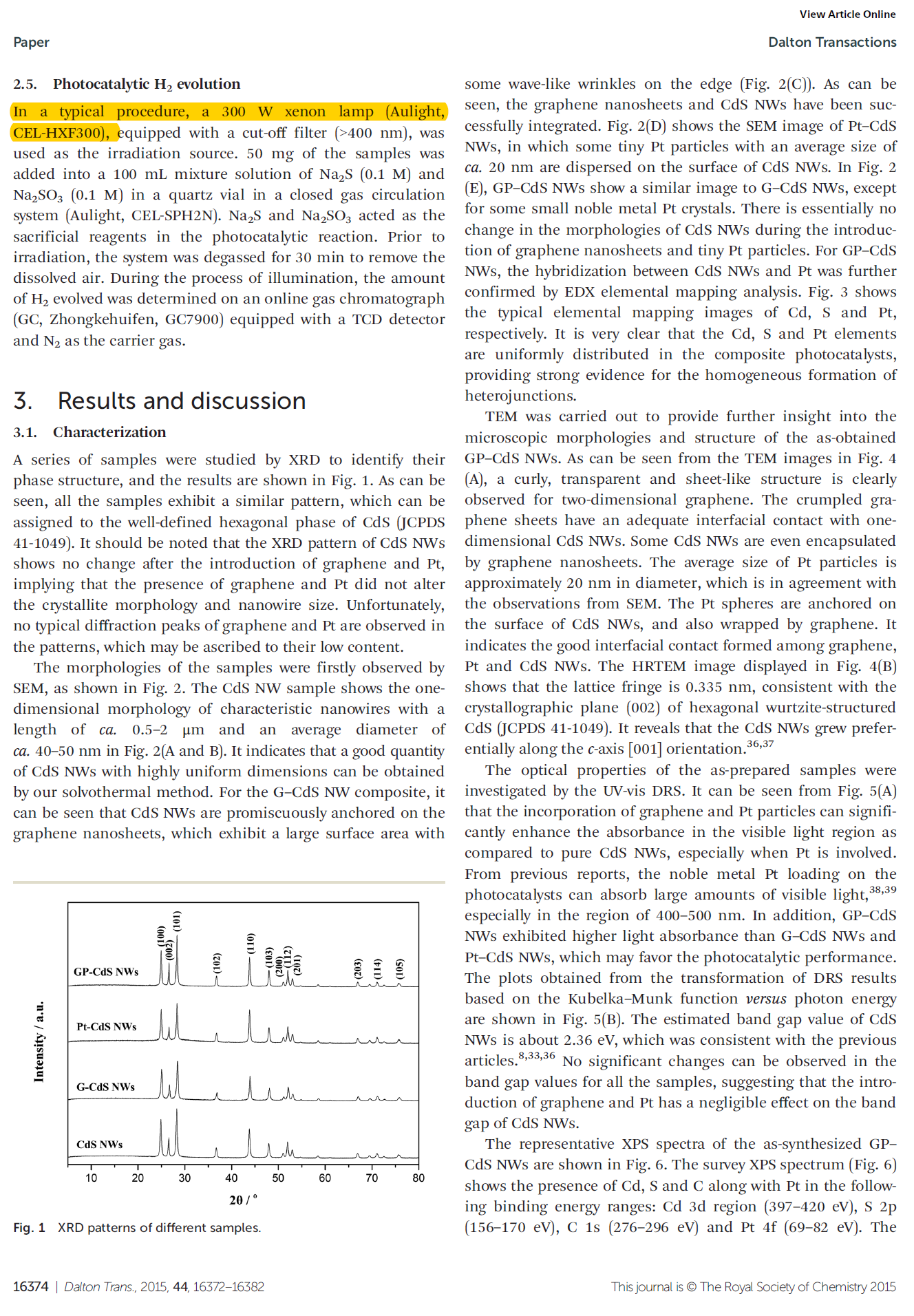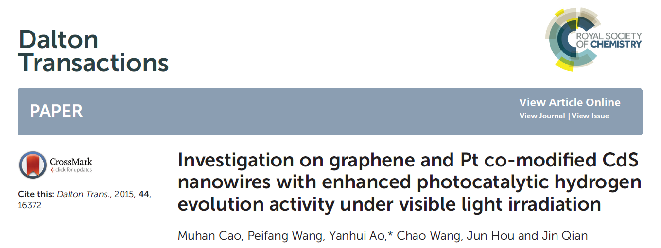 當前位(wèi)置 : 首頁(yè) > 資訊動(dòng)態 > 論文發表 > Investigation on graphene and Pt co-modified CdS nanowires with enhanced photocatalytic hydrogen evolution activity under visible light irradiation