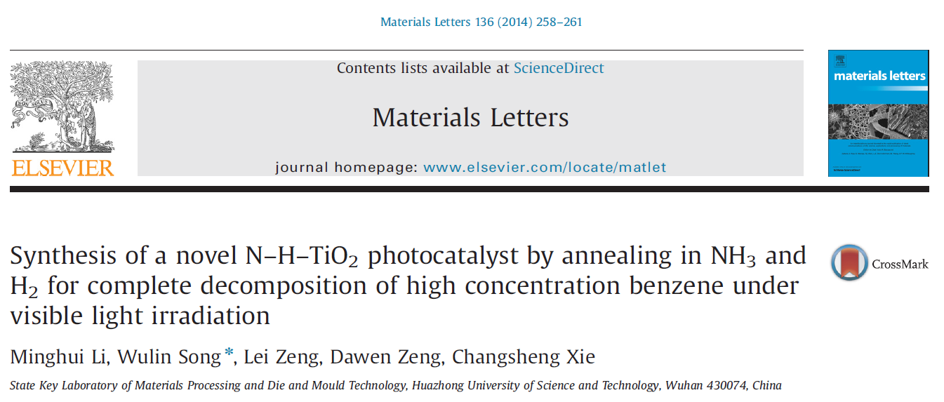 當(dāng)前位置 : 首頁 > 資訊動(dòng)態 > 論文發表 > Synthesis ofanovelN–H–TiO2 photocatalystbyannealinginNH3 and H2 for completedecompositionofhighconcentrationbenzeneunder visible lightirradiation