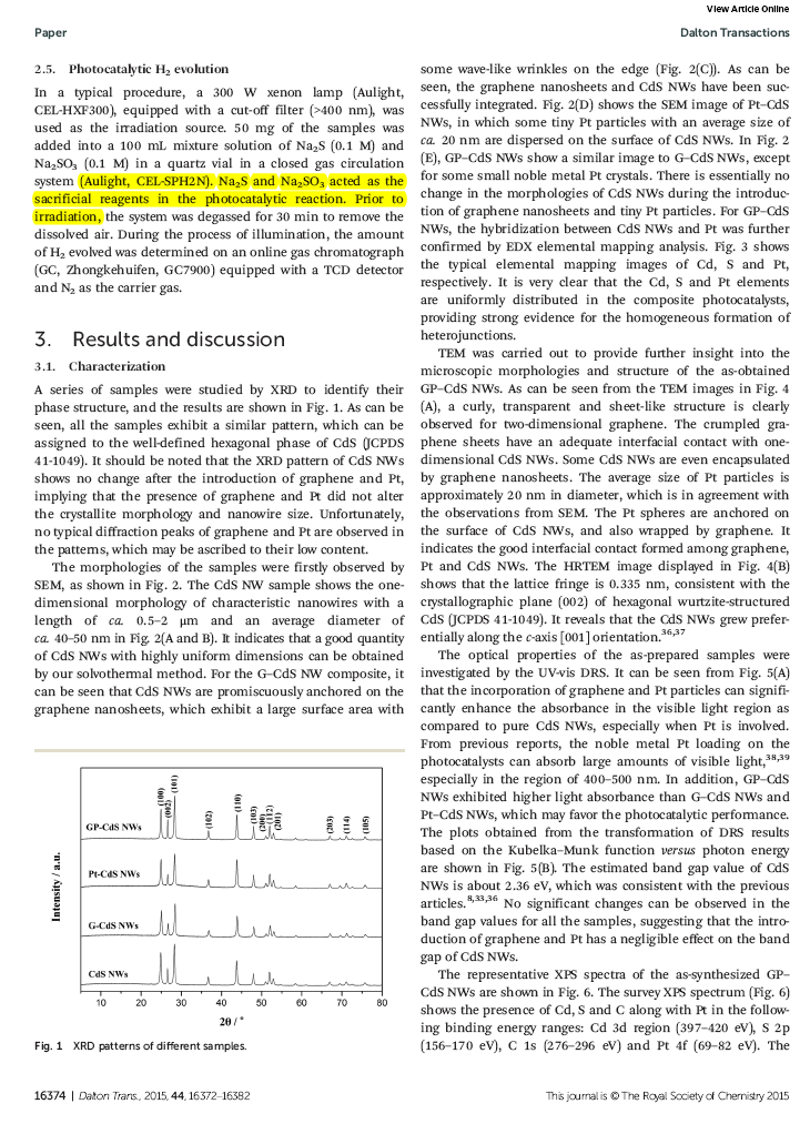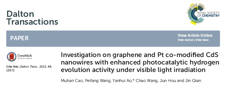 當前位置 : 首頁 > 資訊動態 > 論文發表 > Investigation on graphene and Pt co-modified CdS nanowires with enhanced photocatalytic hydrogen evolution activity under visible light irradiation