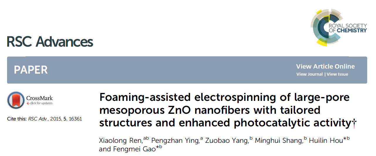 當前位置 : 首頁 > 資訊動態 > 論文(wén)發表 > Foaming-assisted electrospinning of large-pore mesoporous ZnO nanofibers with tailored structures and enhanced photocatalytic activity†