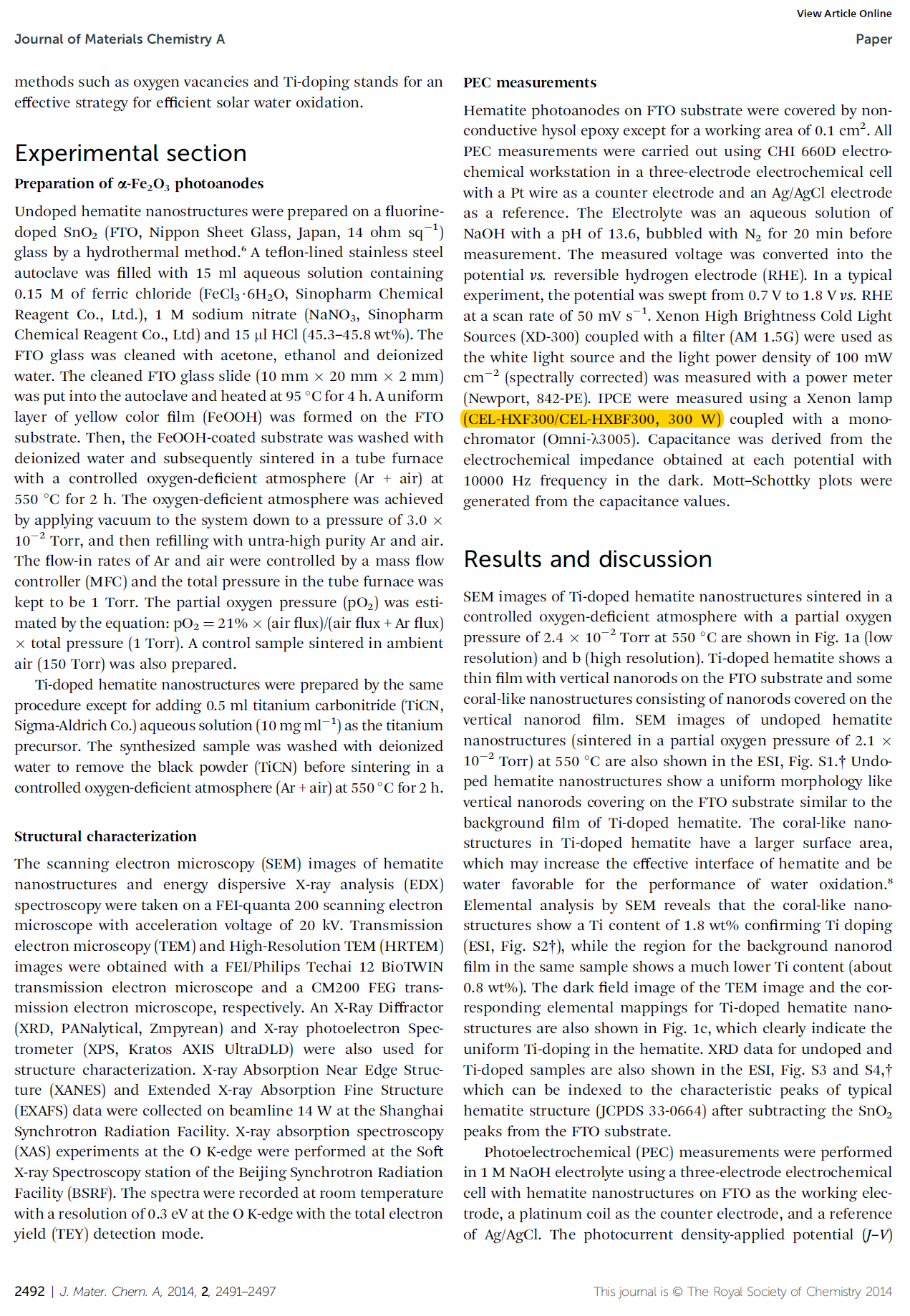 當前(qián)位(wèi)置 : 首頁 > 資訊動(dòng)態 > 論文發表 > Coupling Ti-doping and oxygen vacancies in hematite nanostructures for solar water oxidation with high efficiency†