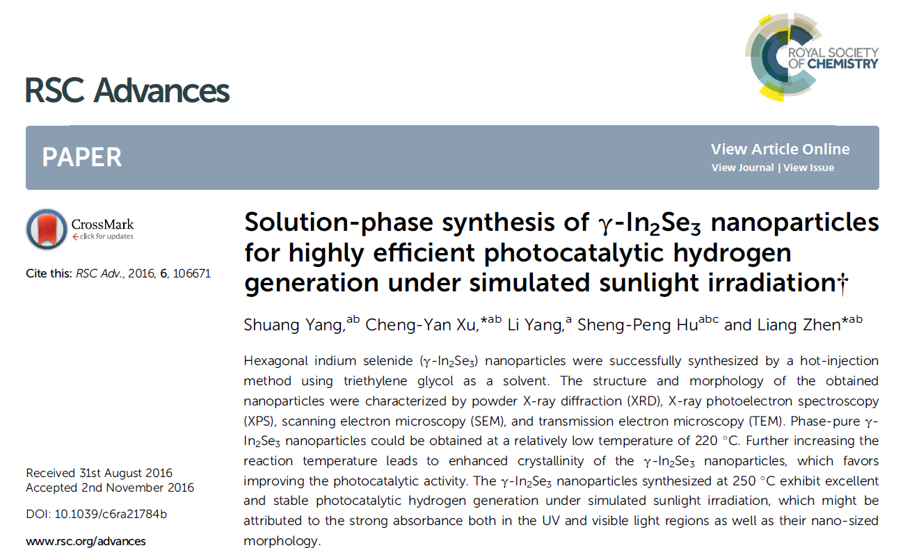 當前位置 : 首頁(yè) > 資訊動態 > 論文發表 > Solution-phase synthesis of g-In2Se3 nanoparticles for highly efficient photocatalytic hydrogen generation under simulated sunlight irradiation†