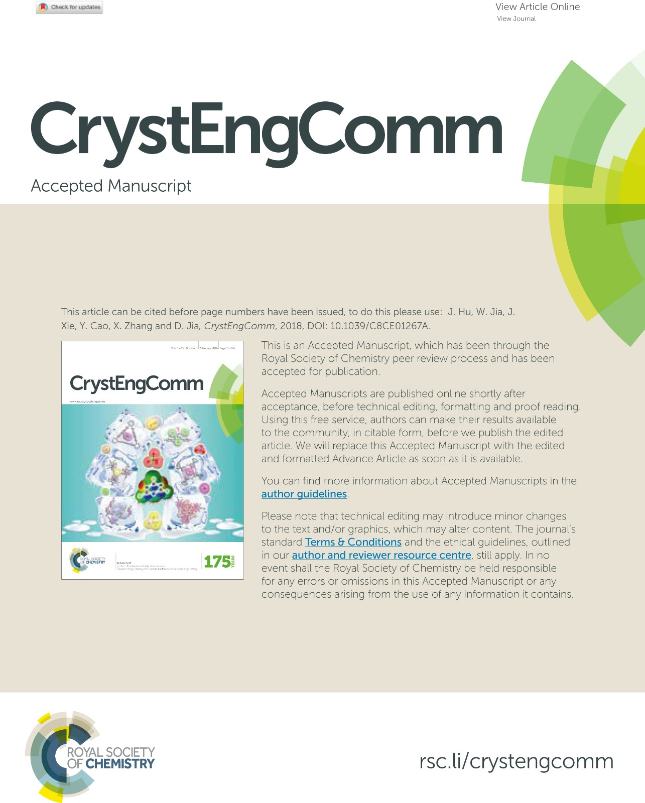 This article can be cited before page numbers have been issued, to do this please use: J. Hu, W. Jia, J. Xie, Y. Cao, X. Zhang and D. Jia, CrystEngComm, 2018, DOI: 10.1039/C8CE01267A.
