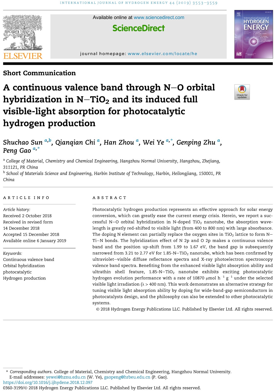 當前位置 : 首頁 > 資訊動態 > 論文發表 > A continuous valence band through N-O orbital hybridization in N-TiO2 and its induced full visible-light absorption for photocatalytic hydrogen production
