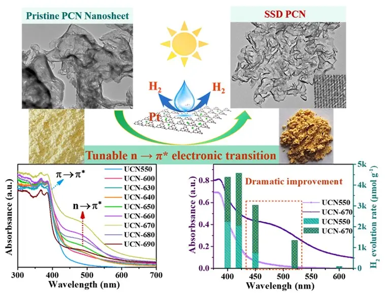 研(yán)究(jiū)團(tuán)隊選擇性(xìng)地在(zài)不(bú)同的小平麵上沉積合適的助催化劑,以促進(jìn)電子收集(jí)表麵(miàn)上氫氣的產生,收(shōu)集空穴的麵產生氧。