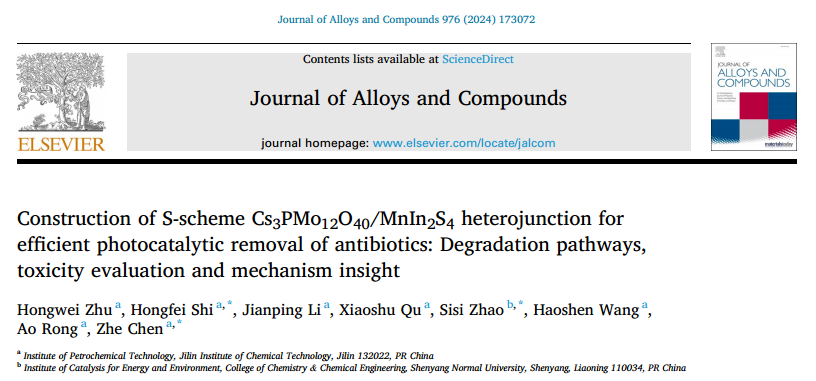 標題(tí):Construction of S-scheme Cs3PMo12O40/MnIn2S4 heterojunction for efficient photocatalytic removal of antibiotics: Degradation pathways, toxicity evalsuation and mechanism insight