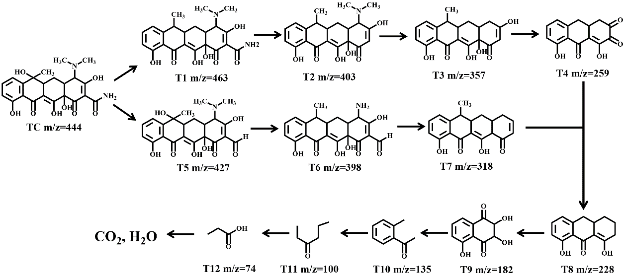 3、采用高效液相色譜-質譜(pǔ)法研(yán)究了TC的降解途徑,通過QSAR預測對TC降解產物的毒性進行評價。