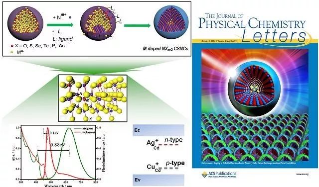 2017年8月,一篇(piān)題為《膠體納米晶的異(yì)價摻雜(zá):陽(yáng)離子交換提供摻雜發光和摻雜能級調控新途徑》( “Heterovalent doping in Colloidal Semiconductor Nanocrystals: Cation Exchange-Enabled New Accesses to Tuning Dopant Luminescence and Electronic Impurities”)的論文,以封麵文章的形式,在國際知名物理(lǐ)化學學術期(qī)刊《美(měi)國(guó)物理化學快報(Journal of Physical Chemistry Letters)》發表(biǎo),並(bìng)受邀以視頻形式在美國化學會網站進行(háng)專題報道。