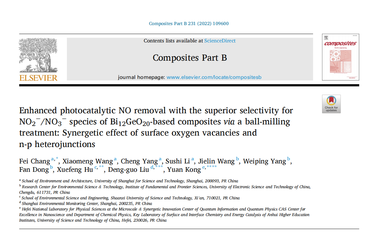 標題:Enhanced photocatalytic NO removal with the superior selectivity for NO2−/NO3− species of Bi12GeO20-based composites via a ball-milling treatment: Synergetic effect of surface oxygen vacancies and n-p heterojunctions