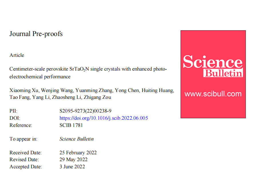 標題(tí):Centimeter-scale perovskite SrTaO2N single crystals with enhanced photoelectrochemical performance