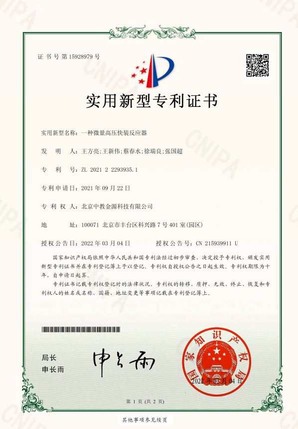 當前位置 : 首頁 > 資訊動態 > 知識產權 > [實用新型(xíng)] 一種微量高壓快裝(zhuāng)反應器
