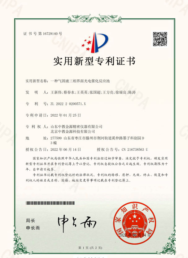 本發明公開了一種氣固液(yè)三相界(jiè)麵光電催 化反(fǎn)應池,包括:具(jù)有內(nèi)腔(qiāng)的本體,本體內(nèi)設有第 一質子交換膜,第一質子交換膜將(jiāng)內腔分隔成充 入反應氣體的A腔室和充入電解液的B腔(qiāng)室;設置 於A腔(qiāng)室內的陰極電極;設置於B腔室內的陽極電 極;負載催化劑的導電碳紙,導電碳紙(zhǐ)設置於陰 極(jí)電極和第一質子交換膜之(zhī)間,且導電碳紙的(de)兩 側(cè)分別與(yǔ)陰極電極和第一(yī)質子交換膜相貼。陽極 室(shì)質子可以通過質子交換膜浸潤到導(dǎo)電碳紙的 催化(huà)劑(jì)上;同時(shí)陰極室的高純反(fǎn)應氣體可以直接 和催化劑表麵接觸;如此可在催化劑表麵(miàn)形成(chéng) 氣‑固‑液三(sān)相界麵催(cuī)化活性中心,大(dà)幅度提高了 光電催化反應活性(xìng),尤其在光電催化CO2還原反 應中(zhōng)應用最佳。
