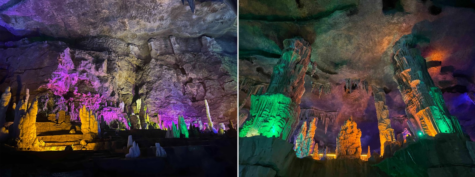 4月28日清晨,北京與滕(téng)州的同事們分別集結出發,一(yī)路歡聲笑語抵達泰安。午後,團隊首站探(tàn)訪了泰山地下(xià)龍宮景區,穿(chuān)梭於億萬年形成的喀斯特溶洞中,驚歎鍾乳石(shí)的鬼(guǐ)斧神(shén)工,更體驗了4000米地下暗河漂流(liú)的驚險刺激。夜晚,全員齊聚“李家廚房”享用(yòng)特色(sè)魯菜,為次日登山儲備能量。