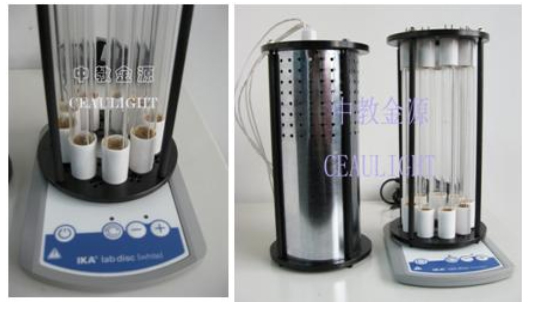 環照式光化學反應係統(CEL-UV9),反應裝置周圍可以選擇3-9隻燈管(guǎn),增(zēng)加反應液的照射強度和(hé)照射麵積,反應裝置采用磁力(lì)攪拌或(huò)電(diàn)動攪拌均可以。該係統一般應用(yòng)到低壓汞燈係統,可(kě)以選擇波長185nm,254nm。