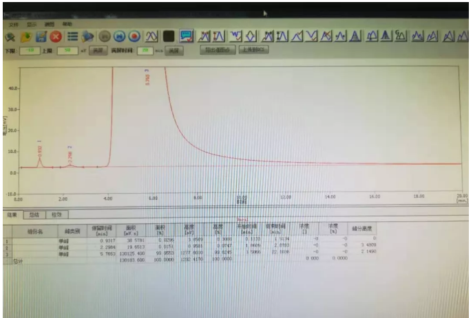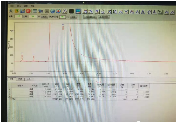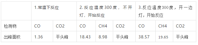 3)反應溫(wēn)度300度,開(kāi)一(yī)邊燈,檢測結果: