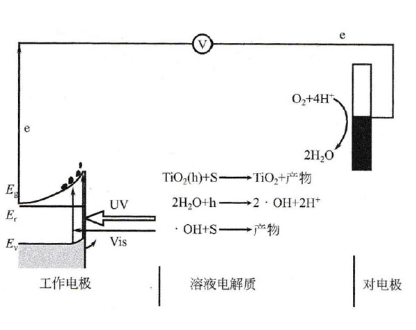 光電協同作用提高光催化材料的催化活(huó)性。將催化劑固定在導電(diàn)基體上,同時外加-偏壓抑製光生電子和空(kōng)穴的複合,從而發展出一種新型的技術—電(diàn)化學輔(fǔ)助光催化技術,即(jí)光電催化(huà)技術。這是一種有(yǒu)效促進光生電子(zǐ)和空穴分離,並利用光電協同作用增強光催化氧化技術,以光催化劑作為光陽極,對其施加一(yī)定的偏壓,光生電子(zǐ)就會遷移至外電路,從而抑製光生電子和空穴的複合,空穴在催化劑表麵積(jī)累,並進(jìn)一步提高催化劑的活性。光(guāng)電化學還原CO2,半(bàn)導體在光照作用下,利用陰極材料在電化學作用(yòng)下都能產生催化活(huó)性的特性,達到光電結合催化還原CO2的目的。