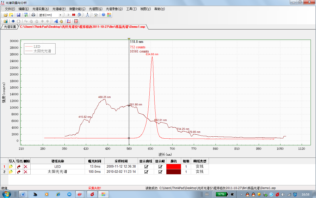 4)提供多種樣品光譜(標準光源光譜/太陽光光譜/氘燈(dēng)光譜/汞燈光譜/各類LED光譜/高低色(sè)溫節能燈(dēng)光譜;各種玻璃片(piàn)的吸光度光(guāng)譜)