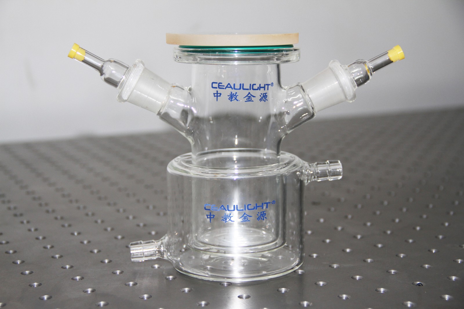 CEL-APR50 | 50ml | 法蘭 | 50mm | 由上向下照射,光路中可以加入濾光片,實現分光功能;雙層水(shuǐ)槽控溫,可配磁力攪拌 |