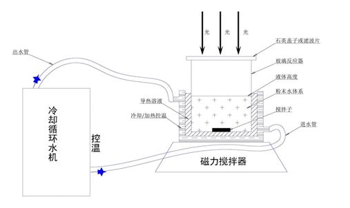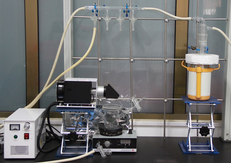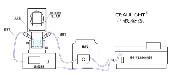 在液相光催化反應器中,通過特(tè)定波長的可見光、紫外光線的輻照,分散或固定在溶液裏的光(guāng)催化劑吸收光線,激發(fā)產生空穴和(hé)電子,並遷移到光催化劑(jì)的表麵與溶液中的反應物探針分子發生(shēng)反應,把探針分子降解為(wéi)其他(tā)物質。通過對溶液中的探針分子濃度隨光催(cuī)化反應時間(jiān)變化分布的測定,可(kě)以對(duì)光催化劑的催(cuī)化氧化降解性能進(jìn)行測試。