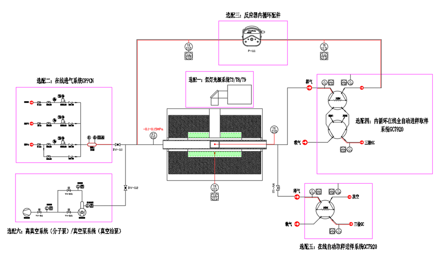 選配三、四 內循環反應及在(zài)線采樣(yàng)檢測 | 選(xuǎn)配三、氣體內循環泵 選配(pèi)四、自動在線閥門組及GC檢測係統(tǒng),GC7920; |
