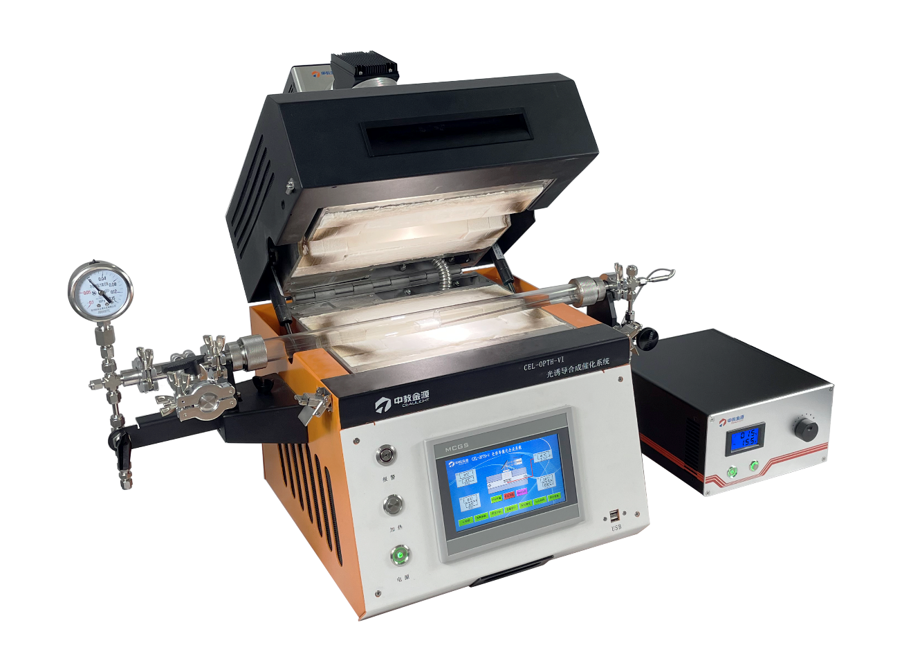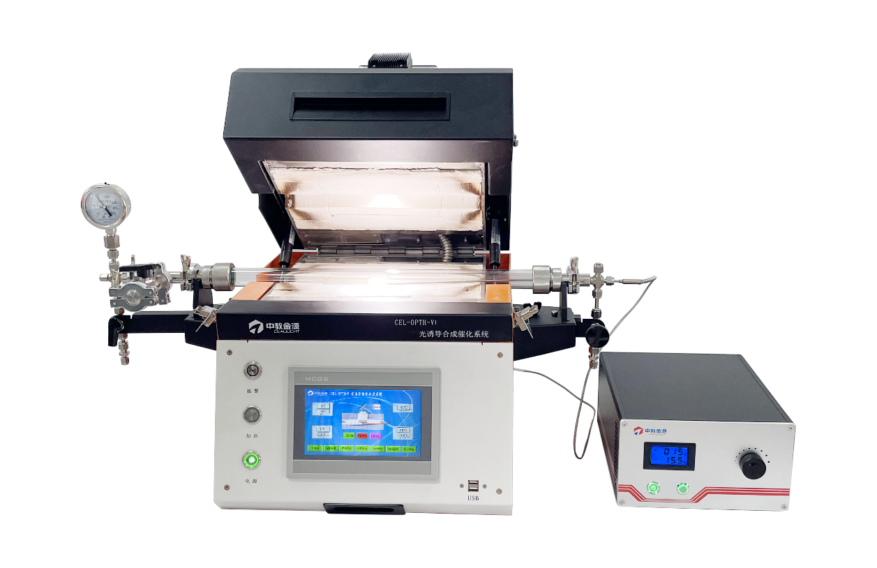 CEL-OPTH-Ⅵ光誘導合成催化係統(光熱協同),在光誘導的(de)作用下,實現(xiàn)催化新材料的合成與光熱催化活性的(de)表征。係(xì)統由高溫反應爐、石英反應管、法蘭(lán)接頭、導光柱(zhù)、控製台等(děng)一體組成,該係統的優勢是在高溫加熱過程中,上方選配的氙燈光源產生的光可通(tōng)過導光柱由外向內導入石英反應管並照射到反應樣(yàng)品上,實現了光熱催化協同作用(yòng)。