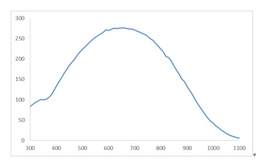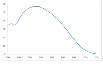 實測(cè)光譜響應曲線                      實測量子效率曲線